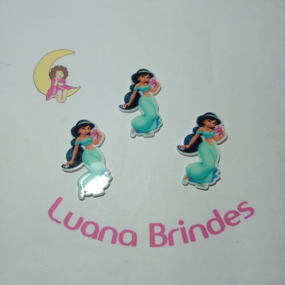 Aplique da Princesa Jasmine em Acrílico Uv com 5cm | APLIQUES DE ACRÍLICO | Aplique da Princesa Jasmine feito com material acrílico UV ideal para confecção de laços, materiais escolares, cadernos, etc. Você pode usar nossos apliques para enfe... | R$2,50 | |