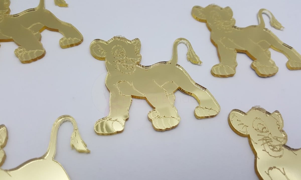 Aplique Do Rei Leão Em Acrílico Espelhado De 4,9cm - 4 Peças | APLIQUES DE ACRÍLICO | Aplique do Rei Leão recortado em acrílico espelhado na cor dourada, o aplique do Rei Leão tem pequenos detalhes desenhados no acrílico espelhado e é ideal para voc&e... | R$9,90 | |