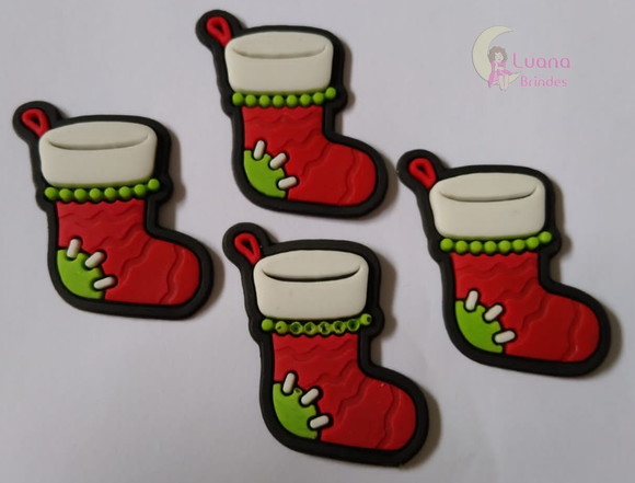 Aplique Meia Natalina de borracha - pct c/7 unidades | APLIQUES EMBORRACHADOS | Aplique Meia Natalina de borracha - pacote com 7 unidades. Esse aplique é feito de material emborrachado e é ótimo para aplicar em roupas, bolsas, tecidos em geral, para decora... | R$14,80 | |