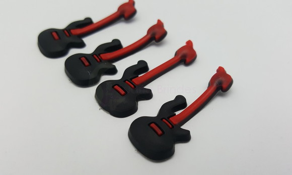 Aplique Guitarra Emborrachado de 3,3cm - 10 unidades | APLIQUES EMBORRACHADOS | Aplique de guitarra/violão/baixo nas cores preto e vermelho, feito com material emborrachado e com furo atrás ideal para enfeitar seus artesanatos. Você pode usar para enfeitar la&... | R$14,80 | |
